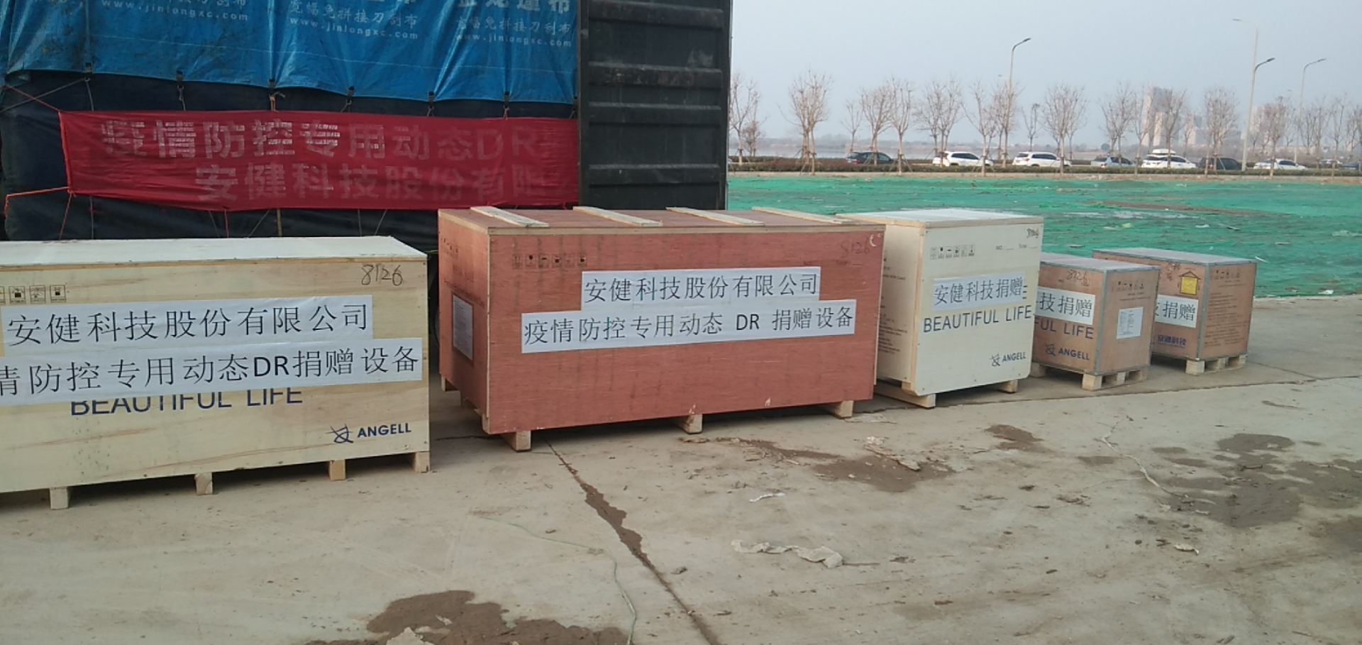 ▲安健科技捐贈設(shè)備順利抵達黃岡“小湯山”醫(yī)院