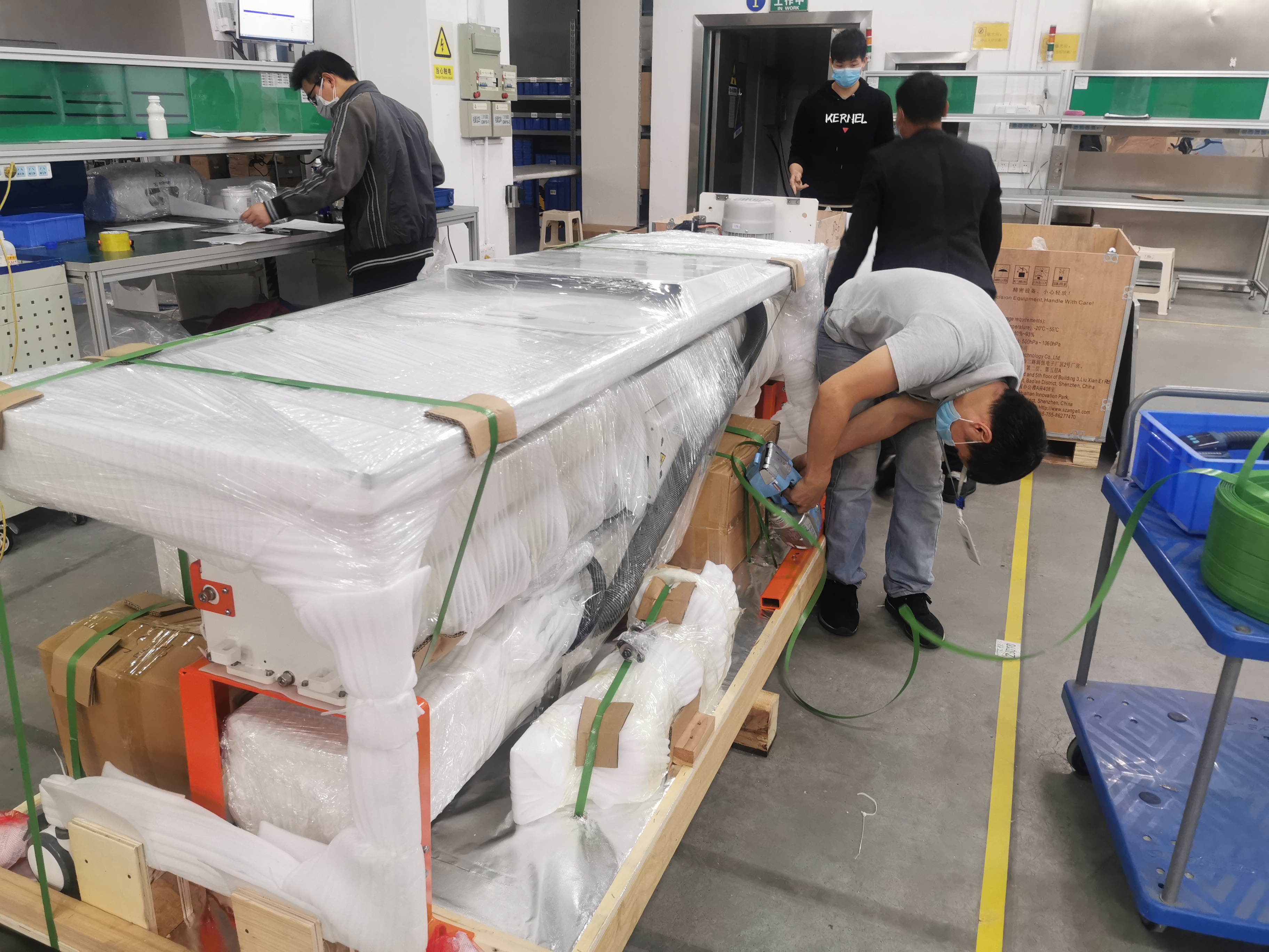▲供應(yīng)鏈團隊加班加點生產(chǎn)、檢驗、包裝設(shè)備,連夜裝車。